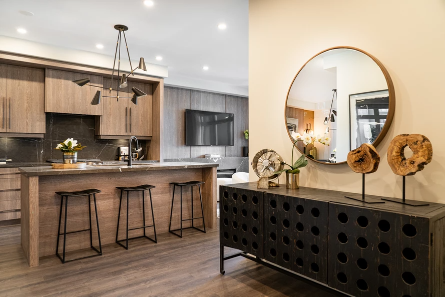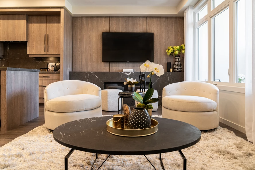 全屋由Treasure Hill主打的Genius 套餐覆盖,包括了CaesarStone厨房台面,Aprilaire 24小时新风系统,Napoleon电子壁炉,Ring,Nest,Amazon Alexa等智能家居设备。可以随时拿手机掌控全屋,享受智能服务。