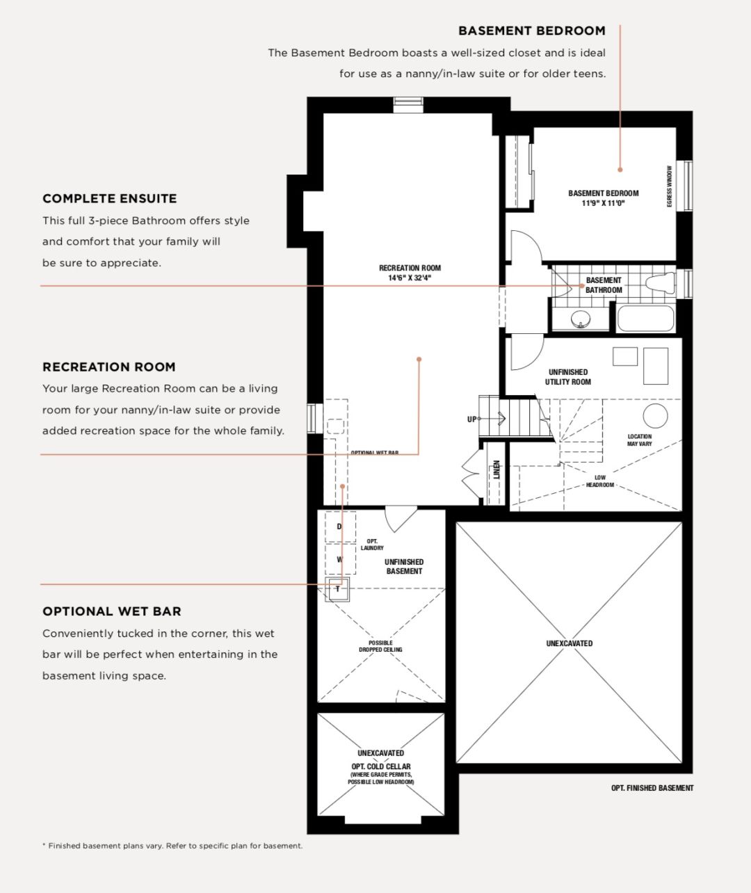 •可选的带有单独侧门的地下室(根据适用的计划);