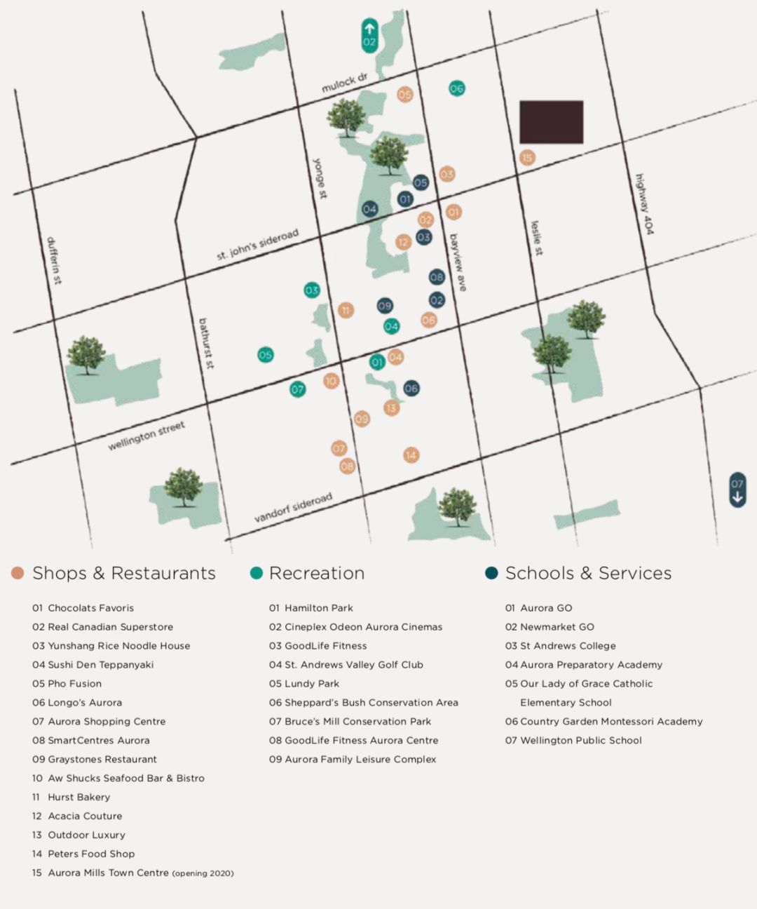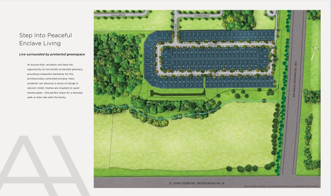 最新的独立屋楼花Aurora Hills便是位于这样一个风景如画、底蕴丰厚却又四通八达的小镇!位于St. John’s Sideroad和Leslie St. Flex之间,拥有40多个独立住宅。